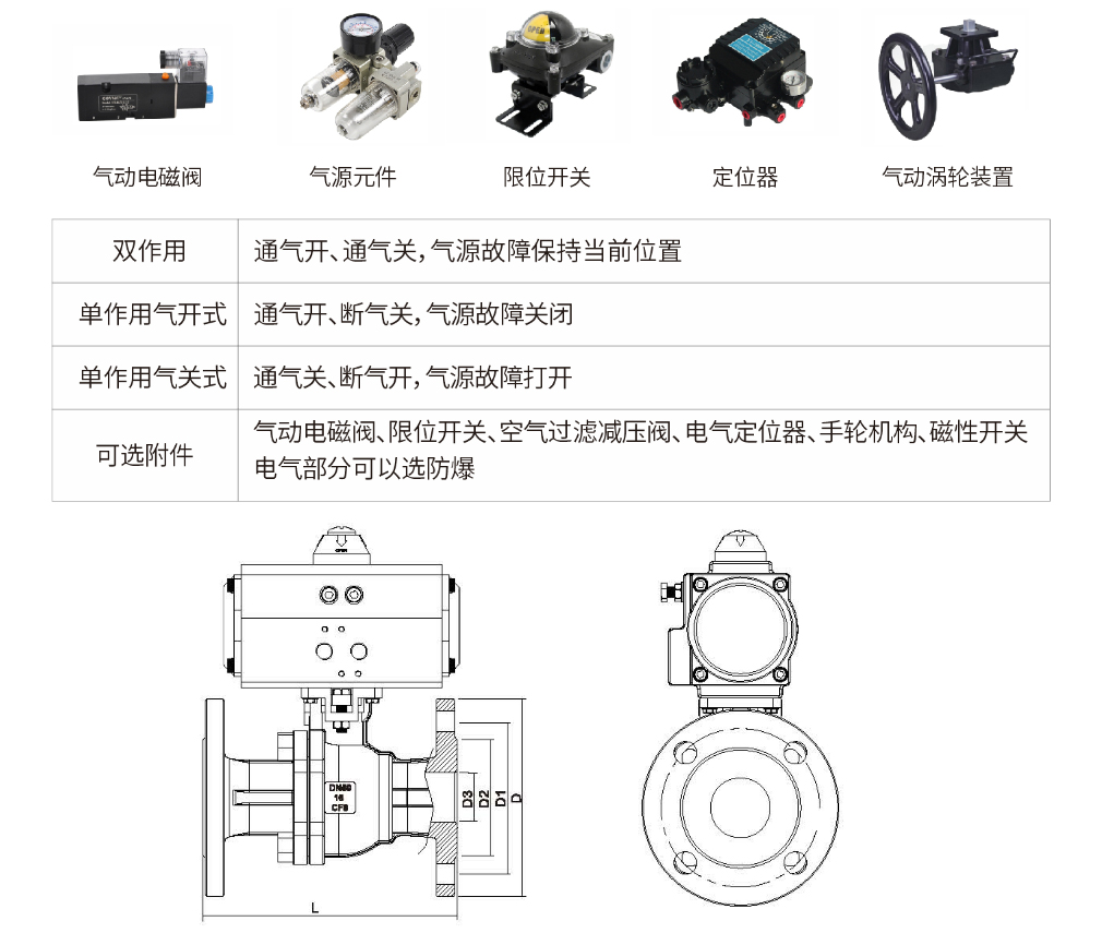 气动球阀、气动开关阀(连接方式、材质、调节型、防爆可选)